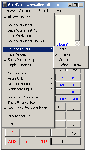 You can change the calculator's keyboard layout to suit the type of work you are doing.