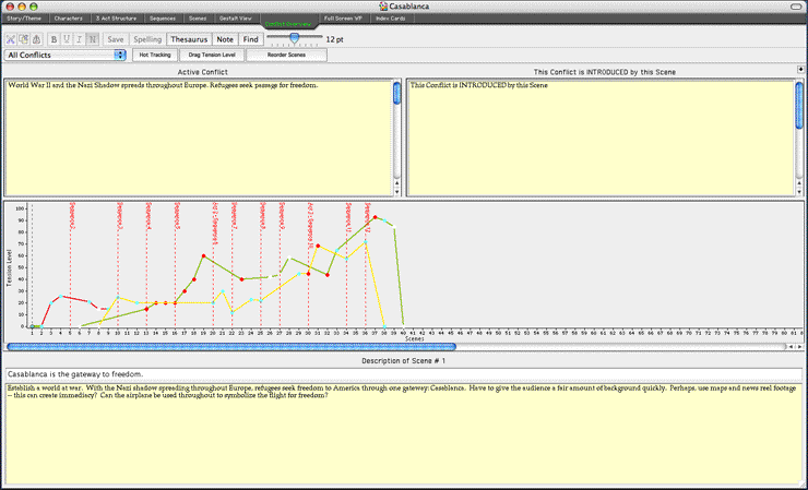 evolution and clashes of the conflicts in your story. Within this view you can insert new conflicts, heighten or resolve