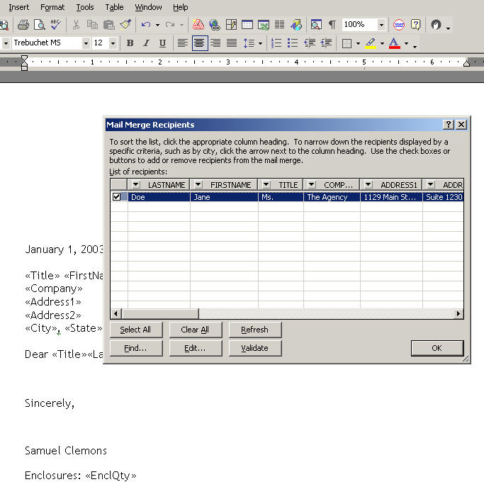 Here's a screenshot of the Writer's Mail Merge Wizard and Query Letter Writer in action:
