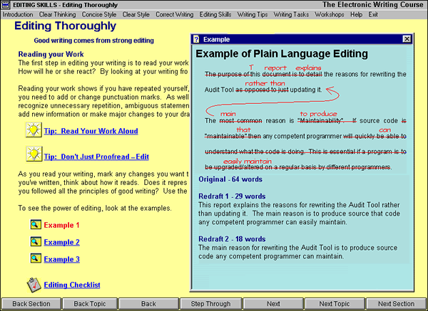 As you work your way through the Writing Course and the exercises, your writing and editing skills will improve. Eventually, you will move on to editing dozens of writing faults in the Editing Skills Section of the Course.